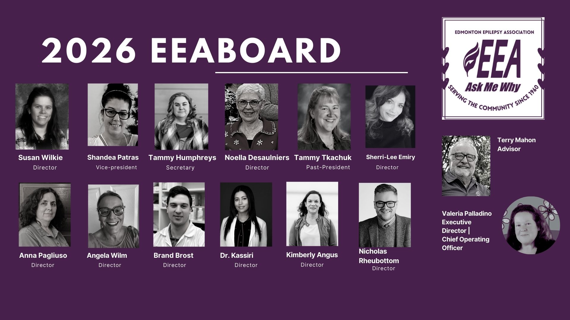 The Edmonton Epilepsy Association is directed by a volunteer board of directors who dedicate their time and energy to the support of those living with or supporting those with epilepsy.